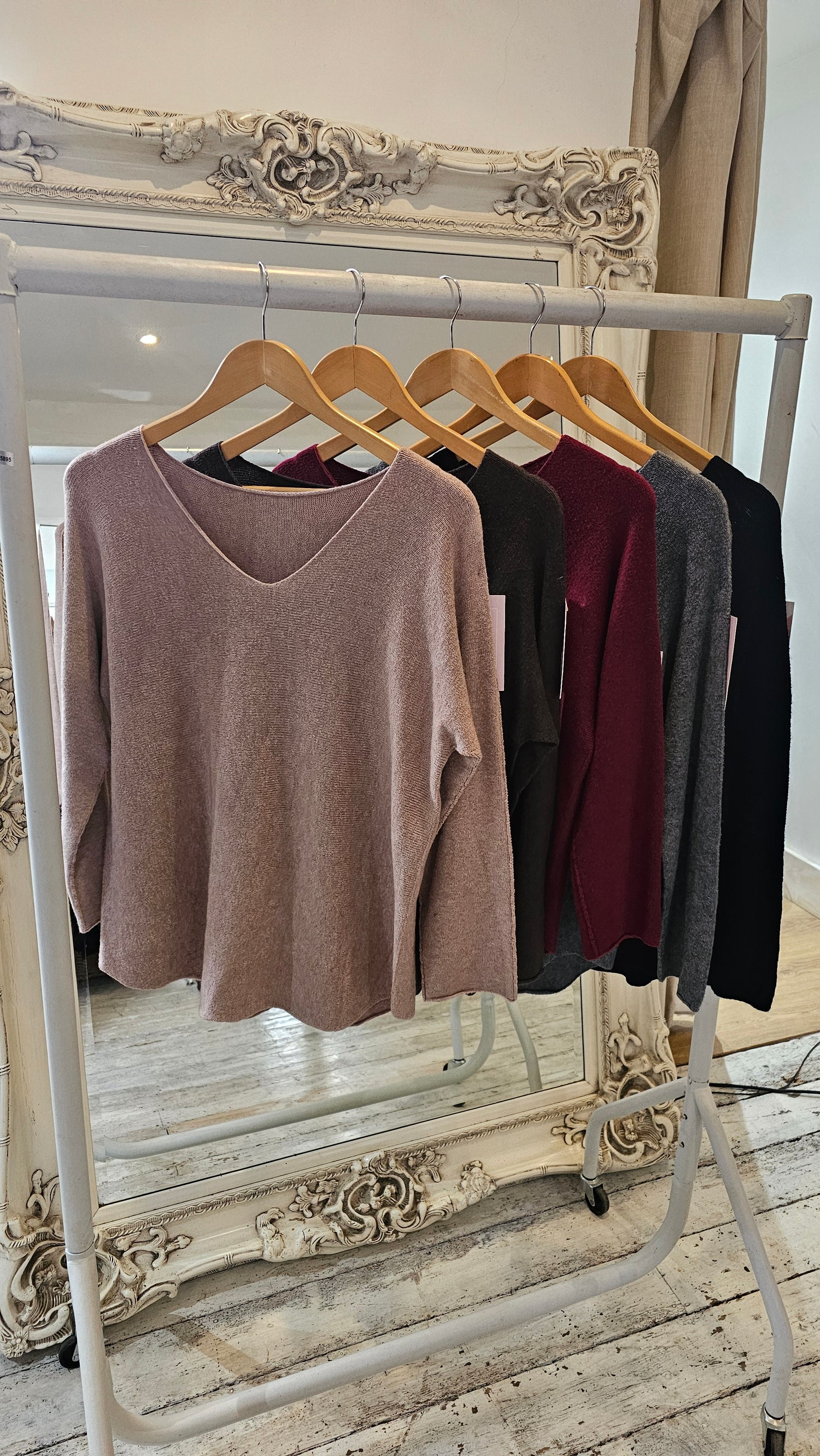 Amber Supersoft V- Neck Knitted Jumper in Chocolate