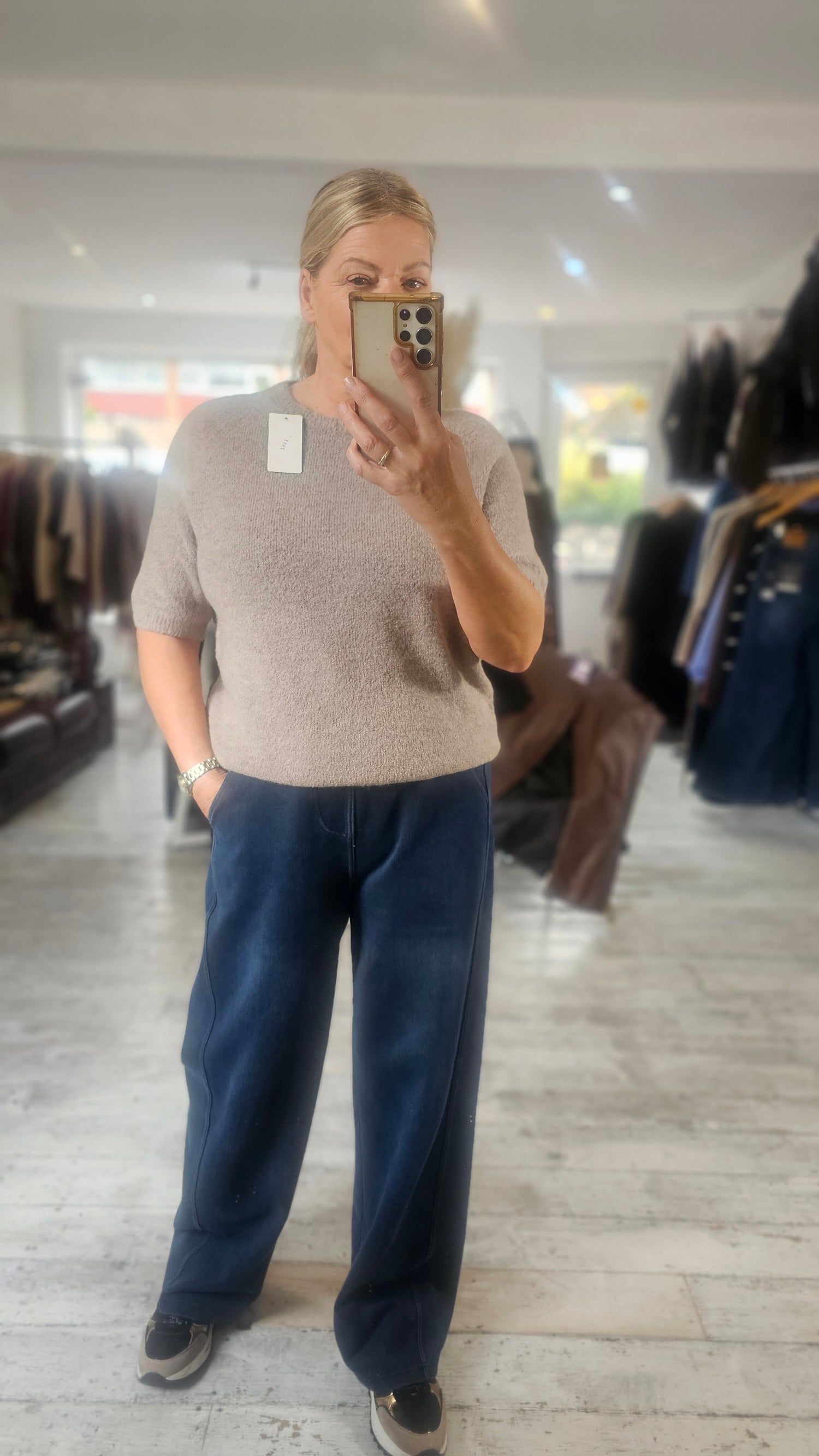 Betsy crew neck half sleeve soft knit jumper in mushroom - preorder