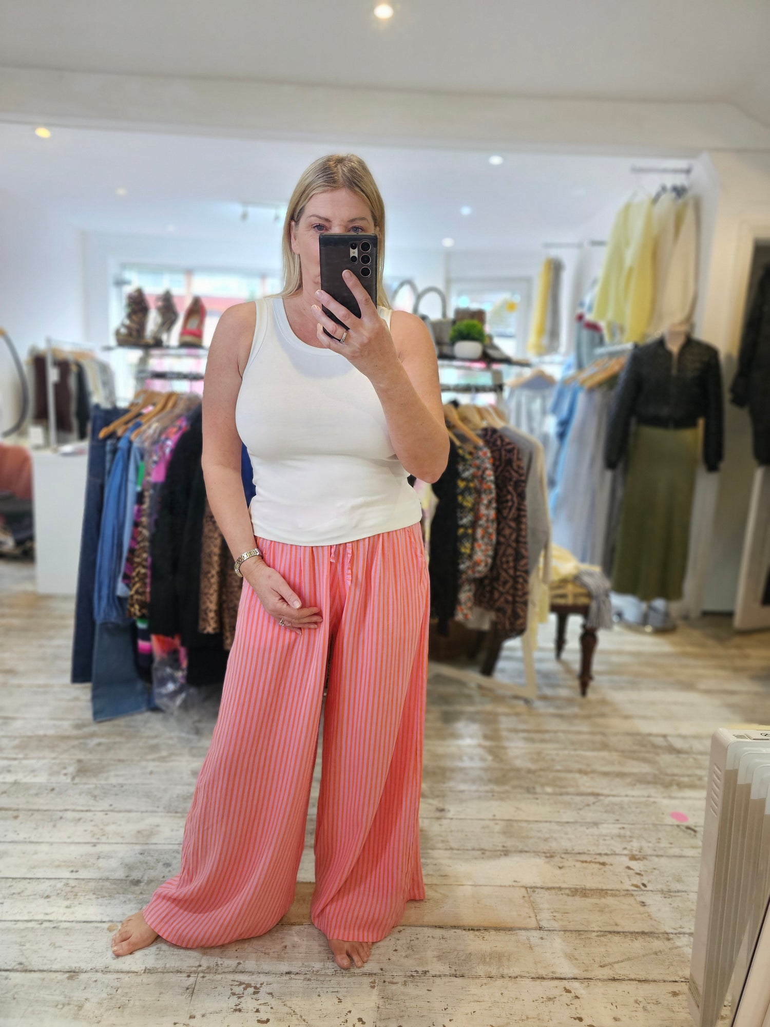 BRIDGET WIDE LEG STRIPE LINEN TROUSERS IN PINK/ORANGE