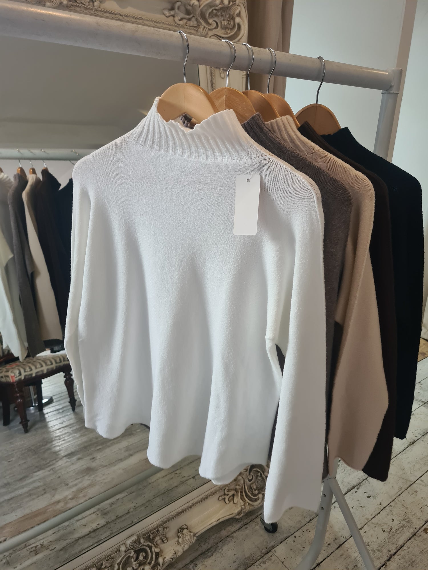 Isabelle RIBBED HIGHNECK PLAIN JUMPER IN ivory