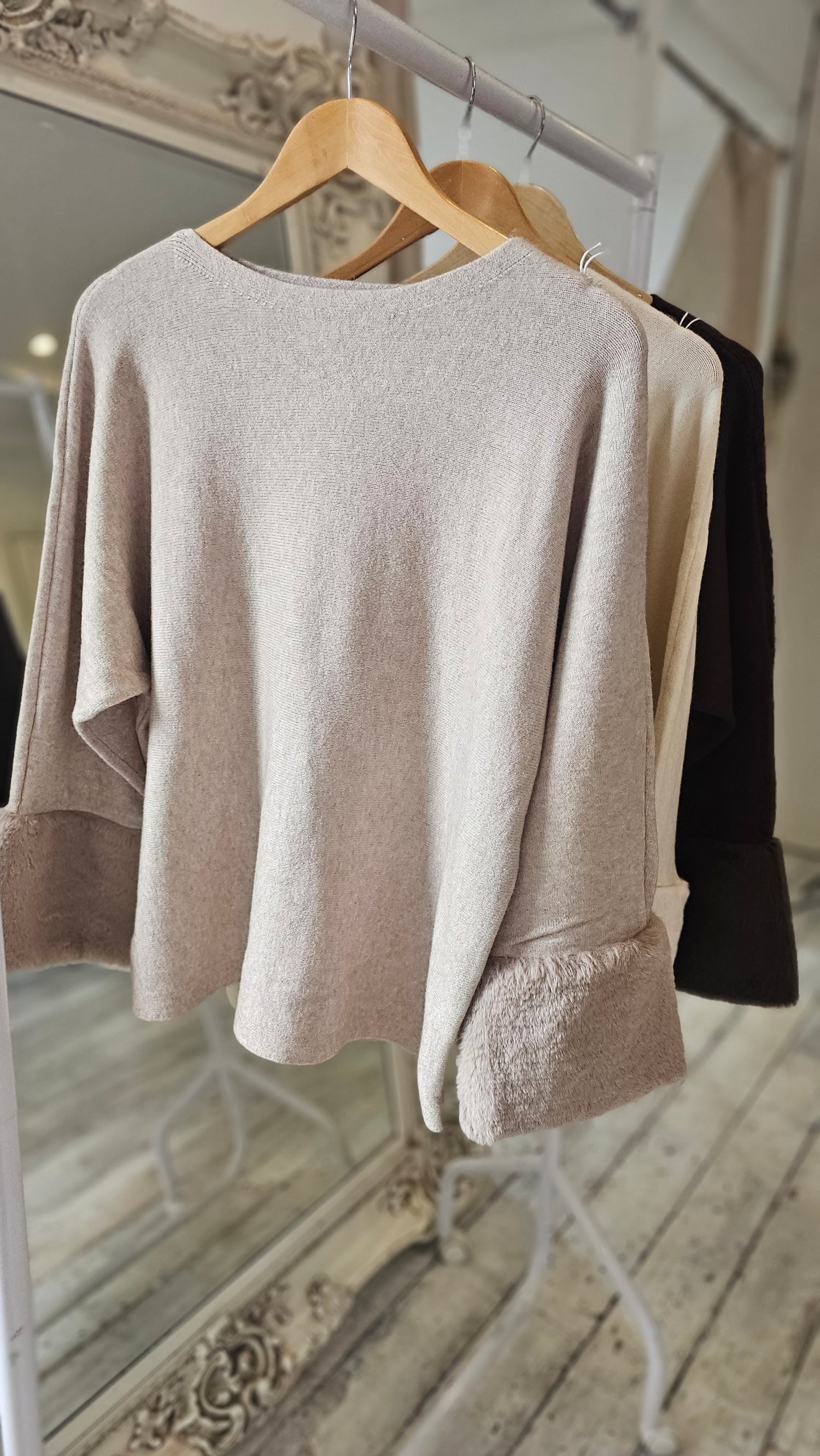 Daphne Faux Fur Sleeve Jumper in Mocha