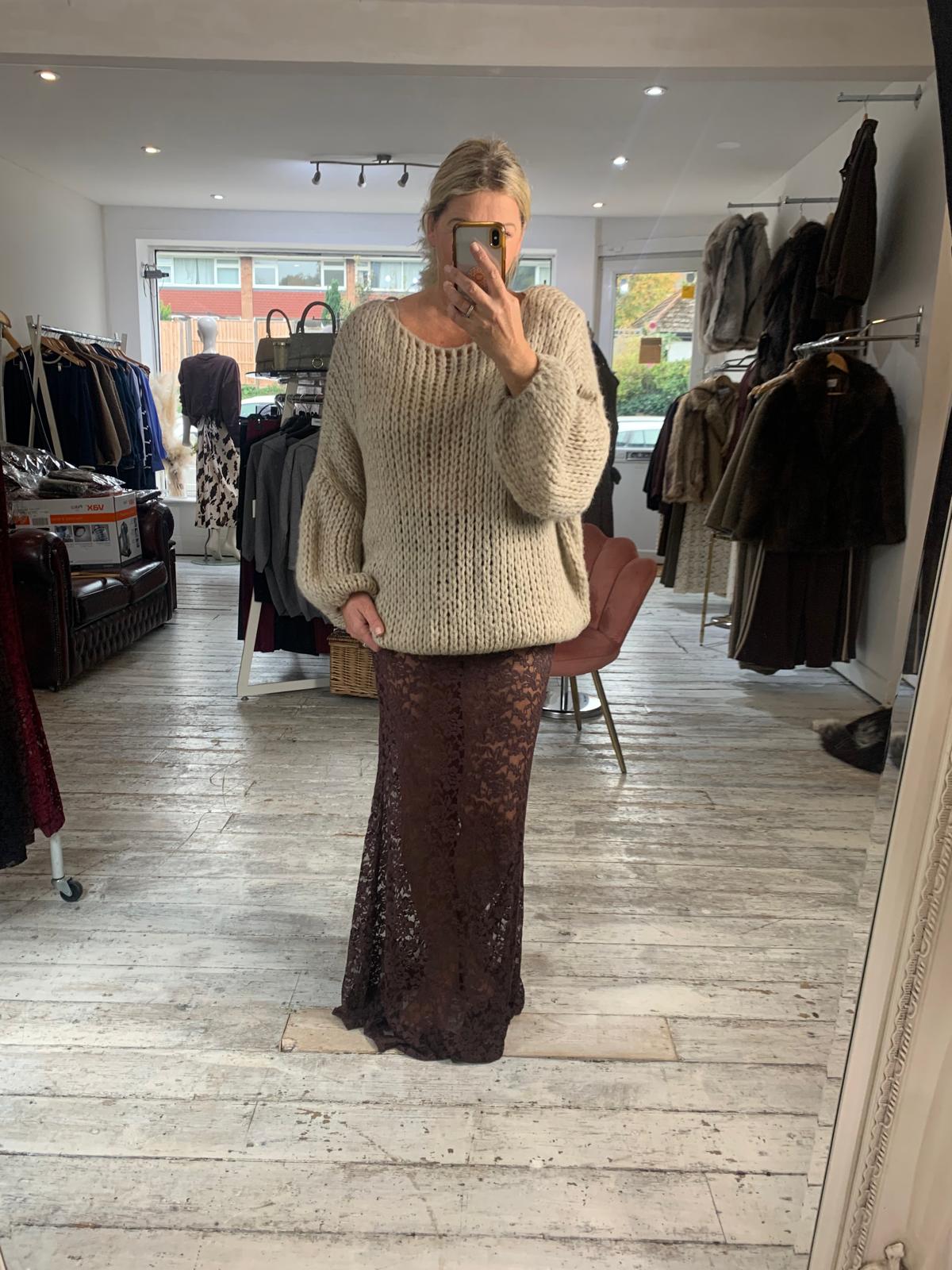 Maya Sheer Floral Lace Maxi Skirt in chocolate