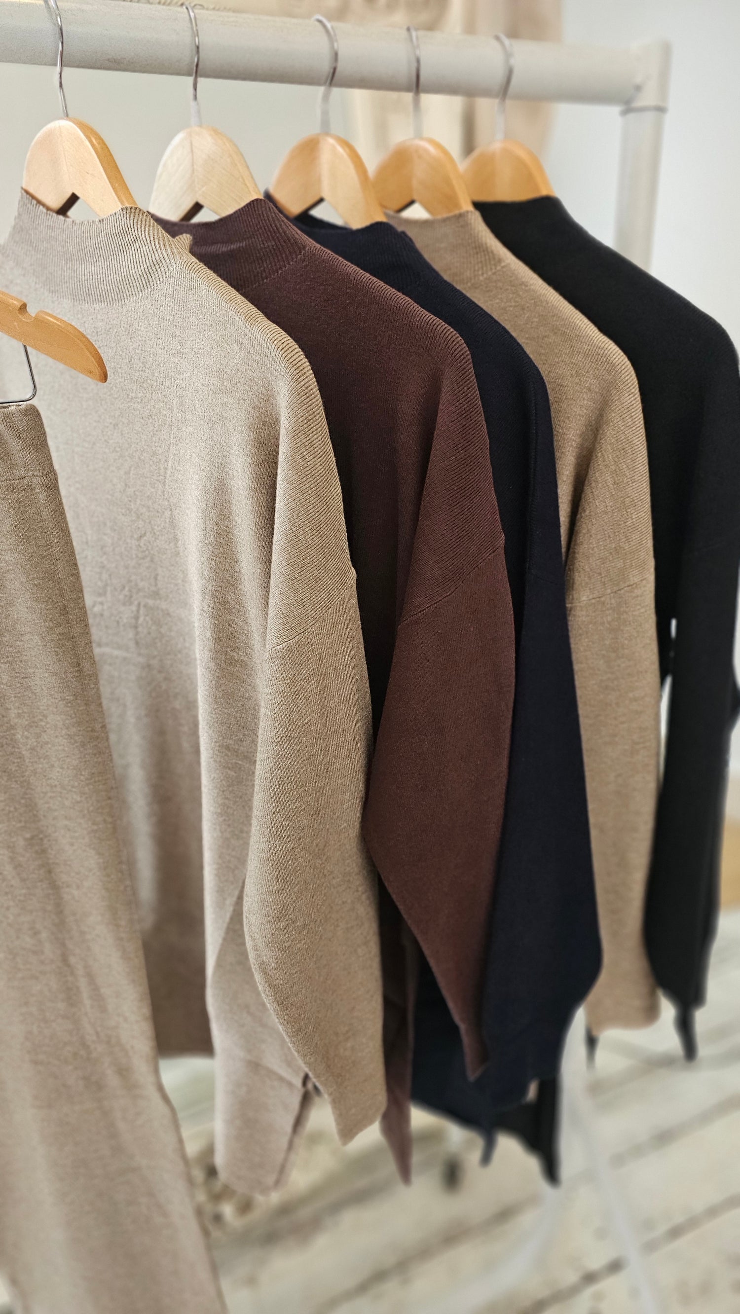 This comfortable and stylish Nikki two-piece set features a high neck design and an elasticated waist for a perfect fit. The wide leg pants also feature a side split for added elegance and freedom of movement. Elevate your wardrobe with this versatile and chic ensemble.