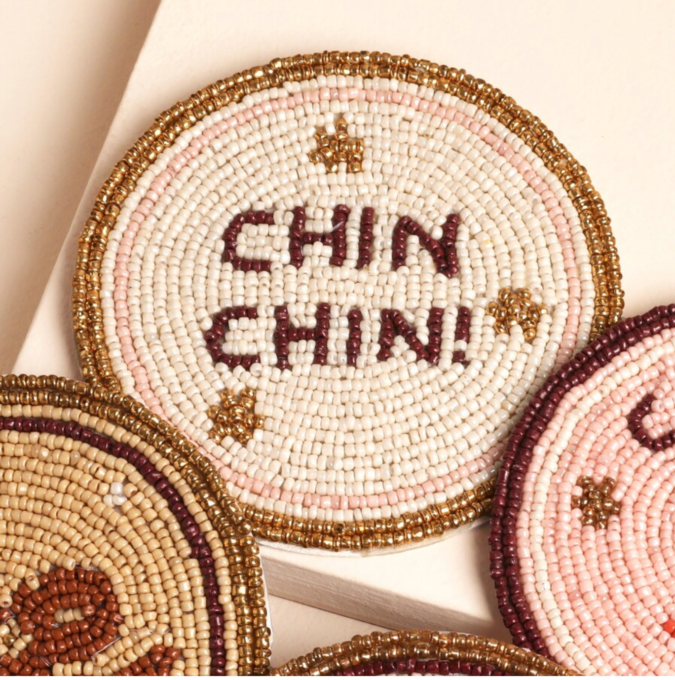 SET OF 4 BEADED FESTIVE PARTY COASTERS